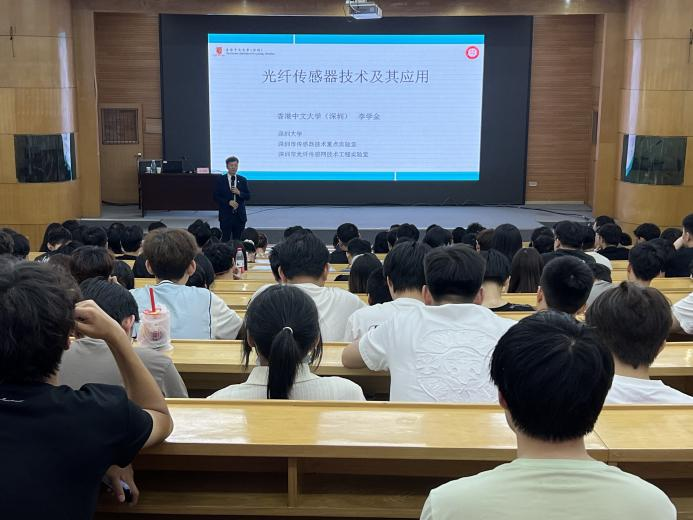 2025年6月24日下午,香港中文大学(深圳)党委书记、协理副董事长李学金教授受邀回到母校,为3377体育师生近300人作“光纤传感技术及其应用”的专题报告。报告会由校科技处处长、电子科学与技术一级学科博士点带头人赵晓锋主持。