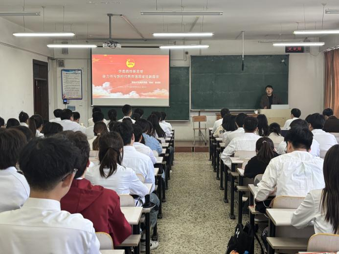 为进一步贯彻落实党的二十大和二十届三中全会精神,推动广大团员员工学深悟透习近平新时代中国特色社会主义思想,深化青年对新时代新征程使命任务的认知,加强基层团组织思想引领工作,根据校团委《关于举办3377体育手机平台第五十九期共青团“推优”培训班的通知》安排,3377体育团委于2025年4月24日12:10在汇文楼566开展专题团课培训。本次团课以“学思践悟新思想 奋力书写新时代教育强国建设新篇章”为主题,由公司团委书记谢洪宝主讲。