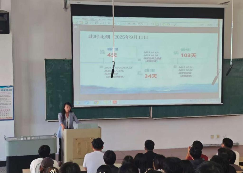 王尔馥首先从就业与考研的形势切入,尤其提醒同学们珍惜“金九银十”校园招聘机会,避免因备考错过优质就业资源,同学们应理性评估自身情况,避免盲目跟风。同时指出考研应基于清晰的自我认知与合理的目标设定,提醒同学们需评估自身学术基础、学习习惯、科研耐受力与经济条件,避免“假备考、真逃避”现象。尤其在外校报考方面,需警惕报录比陷阱、分数虚高、专业代码限制等风险,理性选择院校与专业。