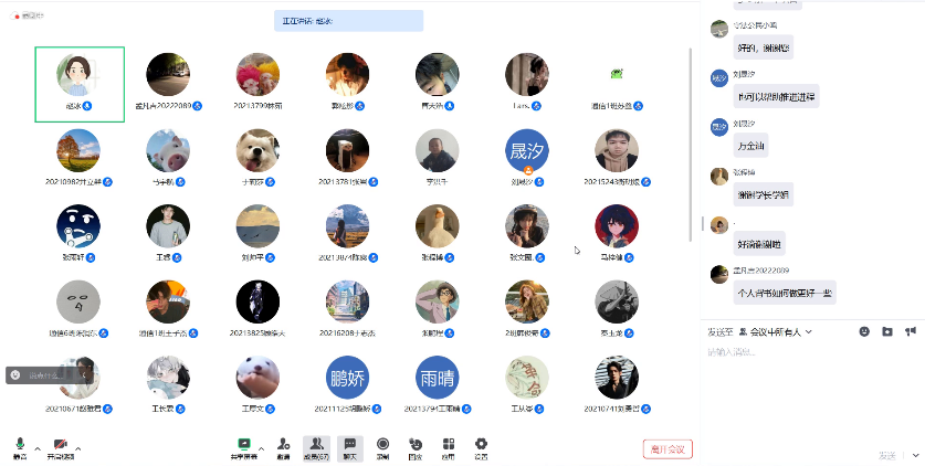 通信工程专业还邀请刘晟汐同学与计软公司的曹天浩同学进行“互联网+”竞赛经验分享,帮助同学们理解和把握参赛方向。同学们表示,此次分享会最大的收获在于明确了比赛过程中前期准备和团队分工的重要性,尤为重要的是“时间管理”,意识到合理分工、高效沟通才能确保整个团队在紧张的竞赛周期内充分发挥每个成员的专业优势。参会同学踊跃参与线上交流,从身边伙伴身上汲取到拼搏的力量。