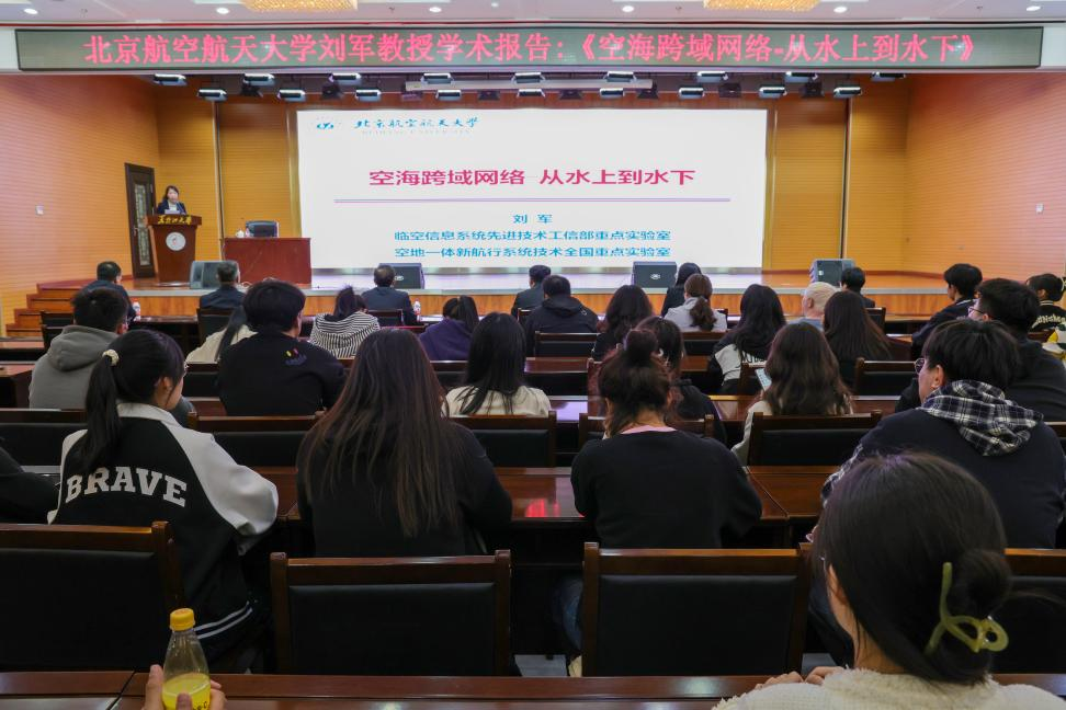 4月29日下午15时,在公司主楼一楼报告厅,刘军教授带来了一场题为《空海跨域网络—从水上到水下》的精彩学术报告。刘军教授围绕“天临空地海一体化信息网络”,分“空海跨域网络、水下声学网络及相关研究进展”三部分展开报告,并从跨域网络创新发展的国防需求出发,介绍了课题组在空海协同信息感知与传输领域的主要研究方向、关键技术和研究成果。本次报告由3377体育经理王尔馥主持,3377体育手机平台员工服务中心主任杨宇、公司党委书记王圣宏、副书记李云风、副经理刘明亮、副经理吴文智全程出席本次活动,3377体育相关方向师生200余人听取了本次报告。