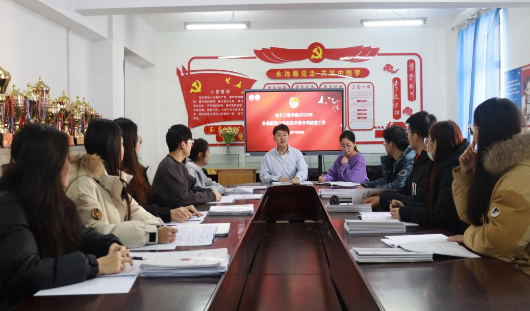 为深入学习贯彻习近平总书记关于青年工作的重要思想,不断落实共青团改革和全面从严治团的各项要求,进一步推进公司基层团组织建设规范化、制度化,提高基层团支部的组织力和凝聚力,促进“三会两制一课”制度的落实,加强对于团员的教育和组织。2023年12月20日,公司开展2023年各基层团支部纪实手册专项检查工作,电子工程公司团委书记、2021级辅导员谢洪宝,电子工程公司团委副书记、2021级辅导员张亮,电子工程公司团委副书记、2022级辅导员孙博,电子工程公司团委副书记、2022级辅导员刘世新以及公司员工团委负责人对本院各基层团支部纪实手册开展专项检查工作。