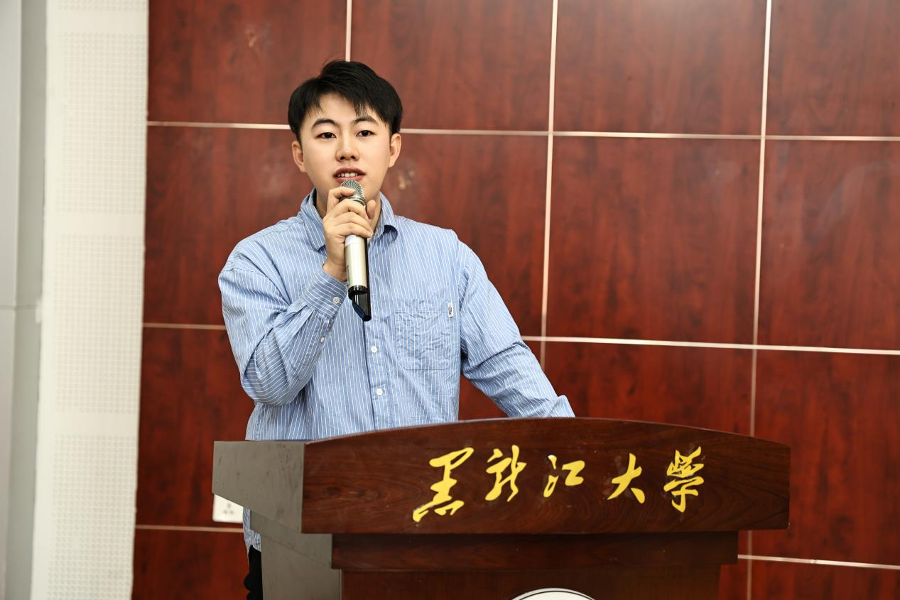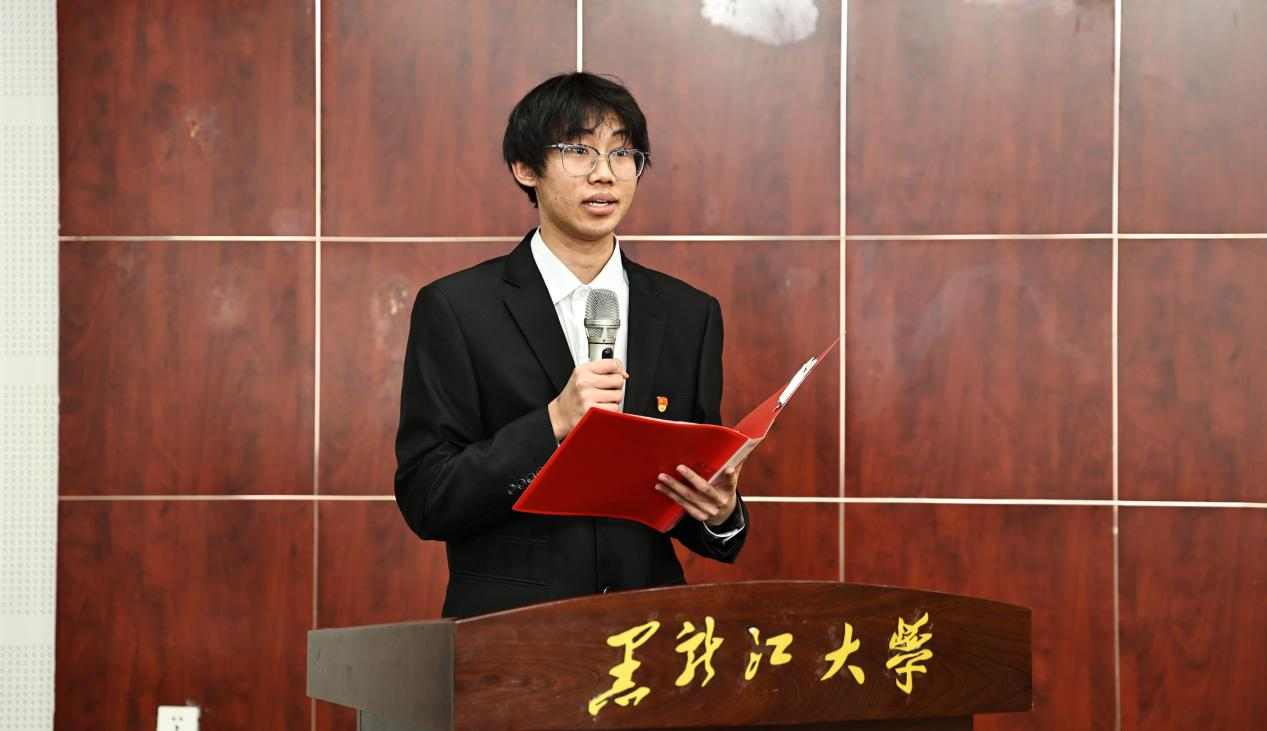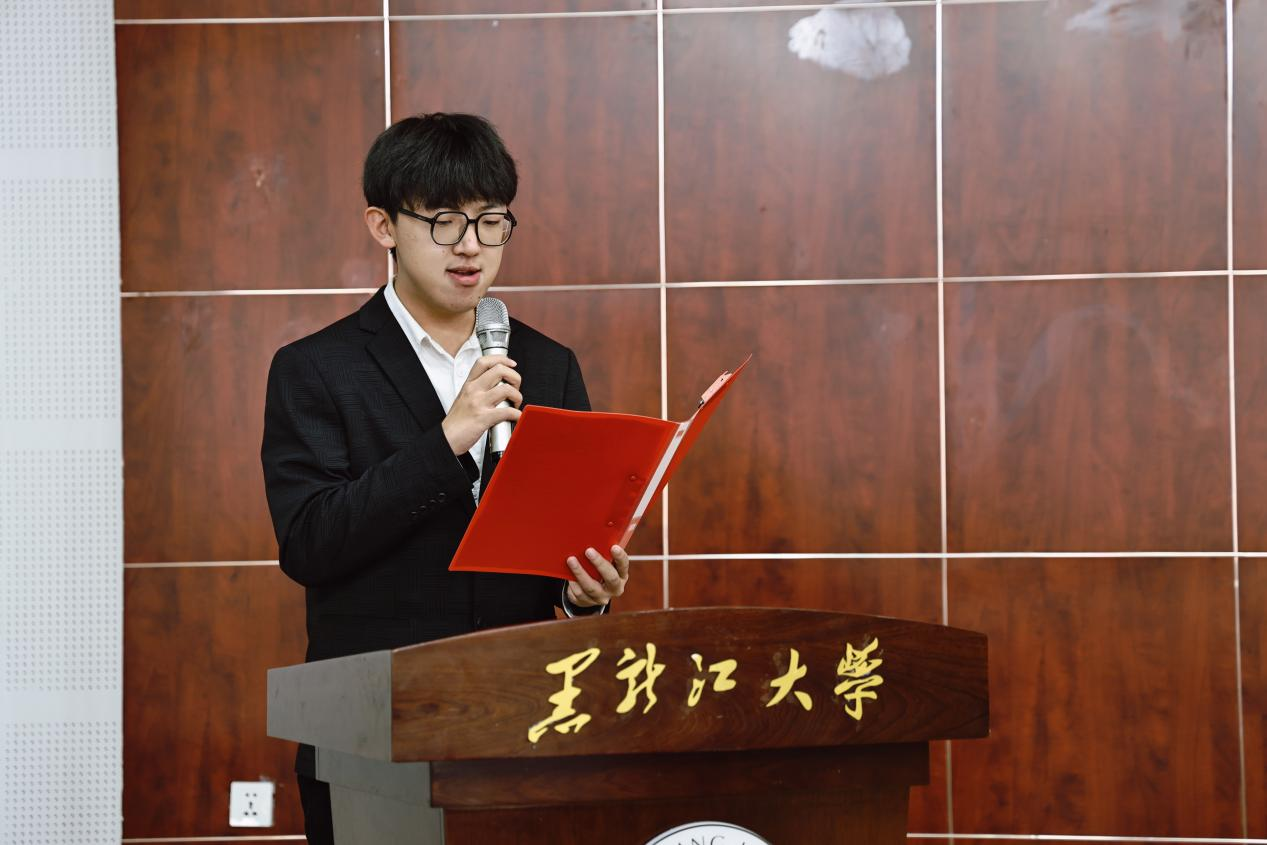 员工团委组织部副部长隋泓博作为老团员代表致祝词。首先向刚刚加入中国共产主义青年团的新团员表示了热烈的祝贺和诚挚的欢迎,我们应时刻牢记自己是一名光荣的共青团员,是先进青年的代表,是身边同学的榜样,并表示希望各位团员珍惜青春年华,勤奋学习,锐意进取,不断提高自己的综合能力,争做当代青年的表率,在推进强国建设、民族复兴伟业中绽放青春光彩。