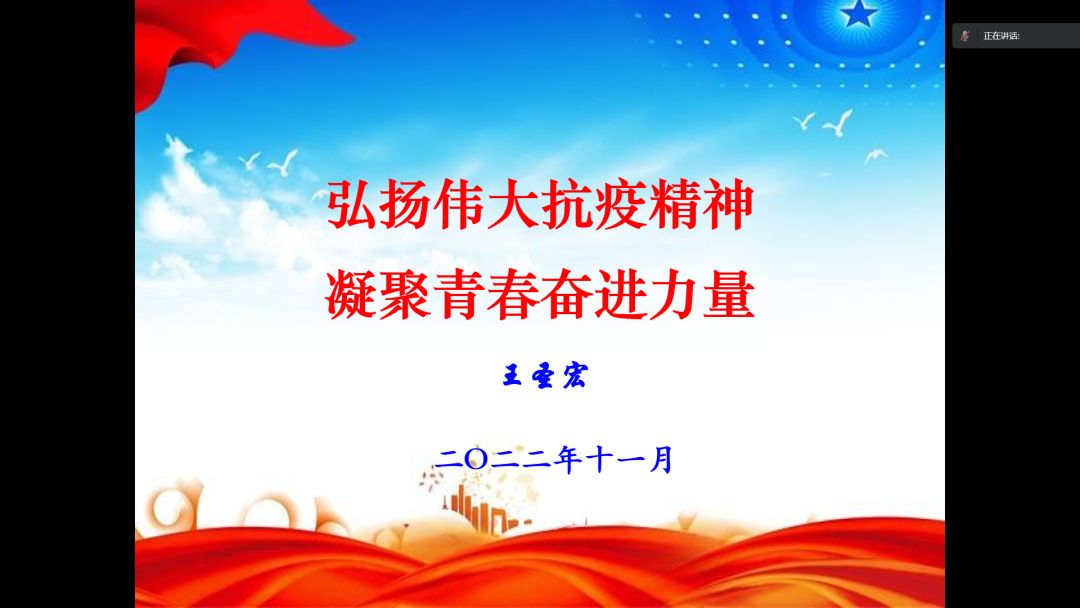 第三期党课的主题是“弘扬伟大抗疫精神,凝聚青春奋进力量”。会议伊始,王圣宏根据公司今年11月初的“战疫”工作和2020年初全民“战疫”指出:以习近平同志为核心的党中央决策果断,行动坚决,正是中国共产党的领导,带领人民打赢疫情防控阻击战。随后,王圣宏详细讲解了什么是爱国主义精神,并从“个人与国家关系”、“人民立场”、“爱国主义是开放的”三个方面对爱国主义做具体理解。最后,他号召广老员工党员:一要做到明晰事理,将对国家发展和个人命运关系的认识建立在相应的真知正见基础上。二要在小我与大我的关系中树立自己的远大志向。三要在平时学习、日常生活、本职工作中,不断积累。四要特别明确和重视自觉认同的重要性。