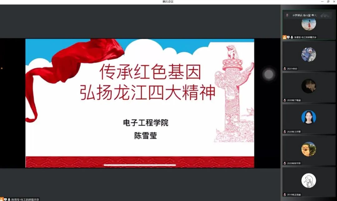 第一期党课的主题是“传承红色基因,弘扬龙江四大精神”。会议伊始,陈雪莹主要介绍了龙江四大精神。陈雪莹讲解到,学习和弘扬四大精神要求我们:坚定理想信念,做中国特色社会主义共同理想的坚定信仰者。陈雪莹鼓励各位同员工逢伟大时代,人人皆可出彩,希望大家能勇担大任,不负时代,不负国家不负党。