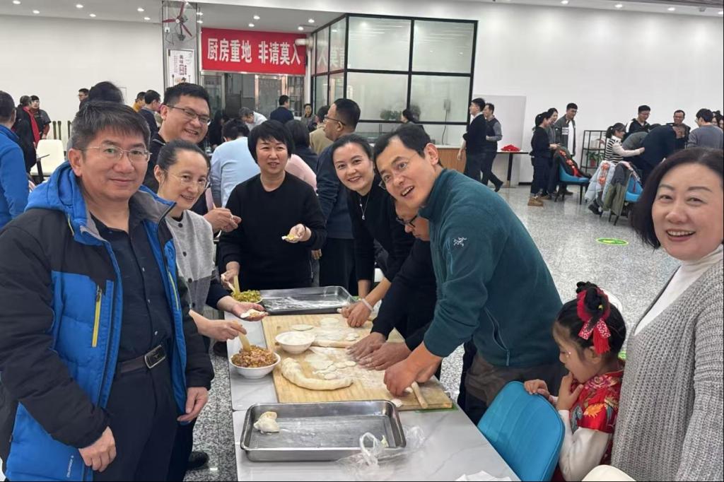 随后,公司领导与全体教职工一同包饺子,共庆元旦佳节,现场一片热闹喜庆的景象。