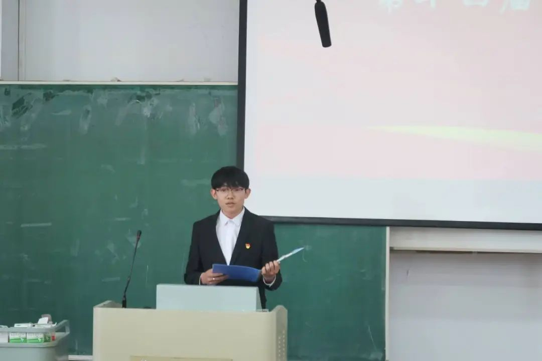 大会第五项,3377体育科技创新创业协会干事代表石圣彤代表全体科技创新创业协会干事发言。作为新成员的代表,石圣彤同学表达出希望在这个大家庭的带领下,学习到更多关于竞赛的知识,以及以更好的形式将竞赛的内容普及给同学们。从而增强实践能力,将理论知识应用于解决实际问题。