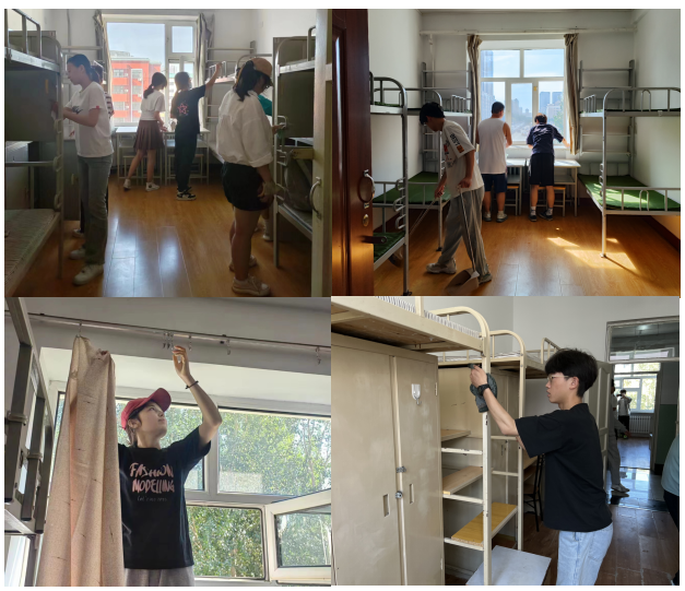 本次为新生打扫宿舍活动获得了2022级同学们的积极响应,学长学姐们带着迎接新同学的热情,自备清扫工具来到新生公寓楼。为提高清扫效率、加强团队合作精神、保证打扫质量,2022级同学们科学分组,分工协作,共同打扫寝室。他们认真清理床边、桌角、衣柜、地面的每一处角落,不留一处卫生死角。同时,为保证宿舍安全,学长学姐们也为即将入住的新生们检查室内设施,确保寝室配置完善、舒适安全。