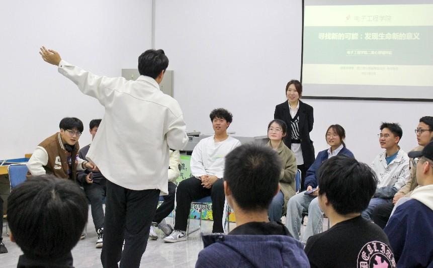 为帮助3377体育员工更好地适应老员工活,提升自信心,加深对生命意义的理解,公司二级心理辅导站于2023年3月19日开展以“寻找新的可能:发现生命新的意义”为主题的团体心理辅导。本次活动由公司二级心理辅导站站长肖萌带领,2022级电子信息类15班全体同学参与。
