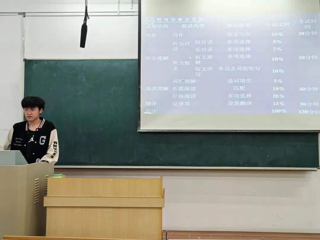 四六级考核同学们的词汇基础以及对语法结构的掌握程度,分享的同学们精心准备,从四六级的题目类型,答题技巧,答题顺序以及对考试时间的把控等几个方面进行深入分析。分享的同学们着重强调,在注重答题技巧的同时,要注意阅读速度的提高、词汇量的积累,也让同学们认识到可以通过模拟试题和历年的真题来提高答题效率和准确度。