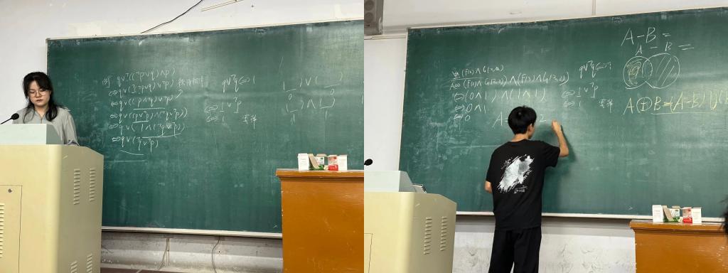本次辅导两位同学充分准备,结合考试实际,为同学讲解重点难点、常见题型,针对同学们在考试中经常犯的错误和普遍问题进行集中讲解,并且尤其强调离散数学学习切莫死记硬背,要注重数学思维的培养并且要养成善于总结做题方法的习惯。在整个辅导过程中,同学们认真听讲,积极互动,教室里学习氛围浓厚。