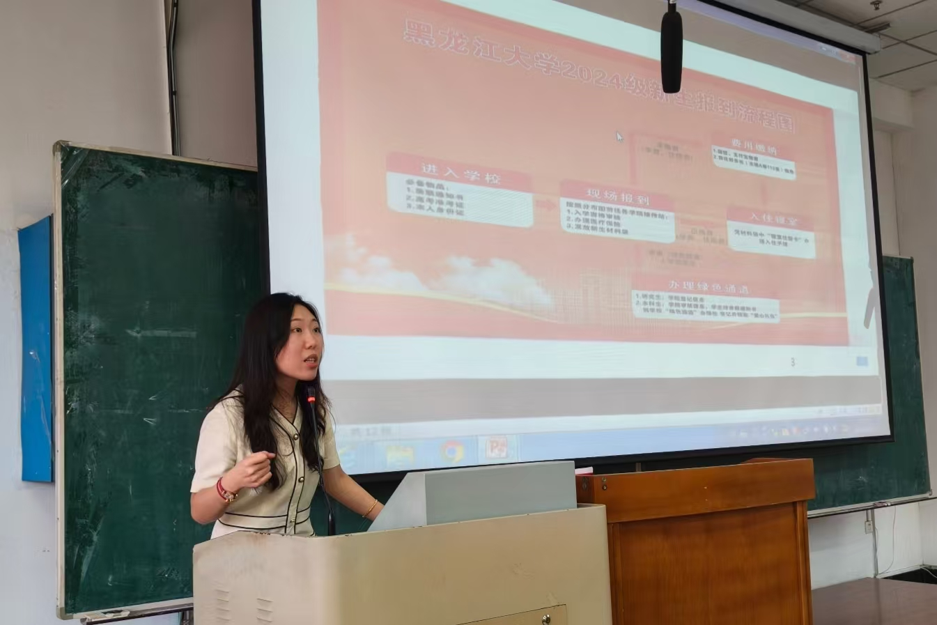 会议第二项,肖萌老师具体介绍了新生报道的具体流程、需要检查的证件以及发放材料袋的工作。进一步保证了新生报道工作的高效开展。