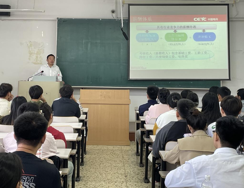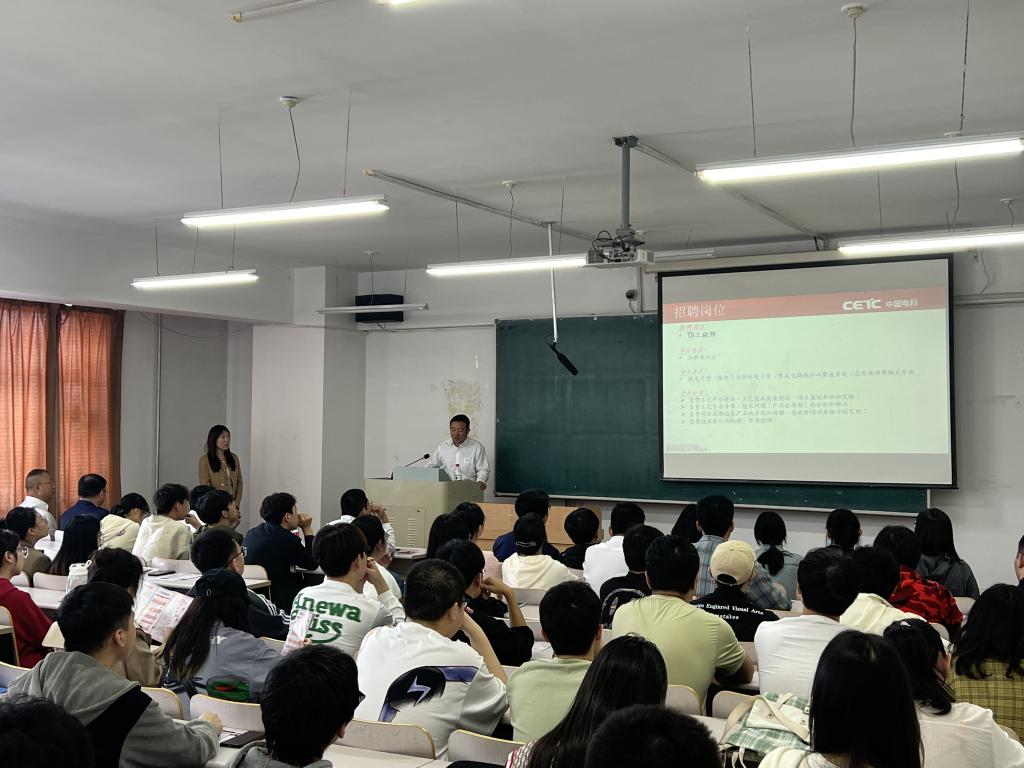宣讲会上,重庆中科渝芯电子有限公司王总首先介绍了公司的发展历程和目前公司规模,让同学们对企业文化有了一定了解。在之后的PPT中,更加具体的介绍了各个岗位的相关情况。在最后的问答环节中,同学们与宣讲人积极互动。在宣讲人的答疑解惑中,同学们对自己的需求与定位更加明确。与此同时,宣讲人也根据自身工作经验为同学们进行就业指导,获得了同学们的认可。