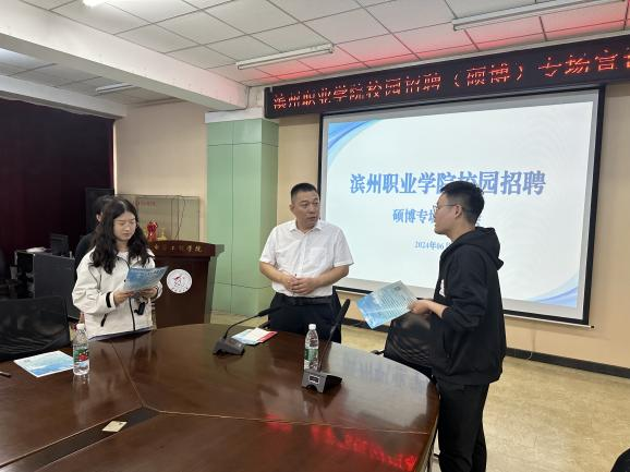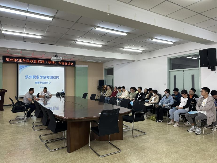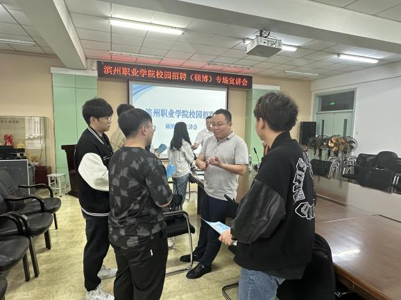 宣讲会上,公司研究生辅导员高武扬介绍了2025届博士、硕士毕业生生源信息和专业分布情况。滨州职业公司相关部门负责人向同学们简要介绍了该校办学历程、院系设置、生源质量、科研平台等情况,并现场与同学们互动问答,针对同学们关切的岗位设置、专业需求、薪资待遇、人才引进政策、职业发展前景等进行详细讲解。