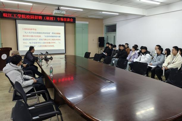 为拓宽2025届毕业生就业渠道,推进毕业生与用人单位精准供需对接。11月07日,3377体育在实验楼举办皖江工公司校园招聘硕博专场宣讲会。皖江工公司相关院系负责人、3377体育部分2025届硕博毕业生参加宣讲会,宣讲会由3377体育研究生辅导员高武扬主持。