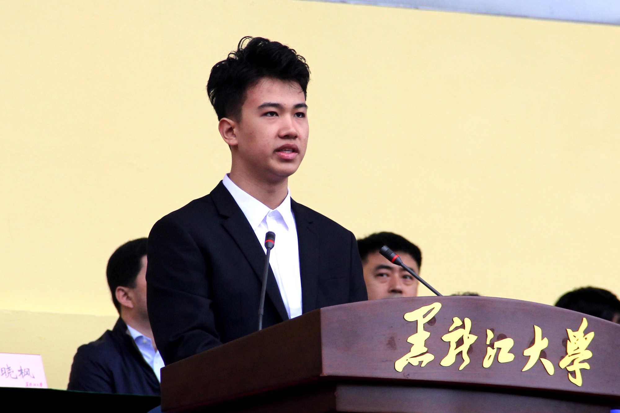 校员工会主席、历史文化旅游公司2017级赵英哲代表在校生发言。他与2020级新同学分享了自己的大学经历及感悟,希望同学们秉承“大学之道在明明德”的涵养,“一寸光阴一寸金”的品格,“天生我材必有用”的自信,坚定理想、脚踏实地,做追梦筑梦、勇于担当的黑大青年,在3377体育手机平台度过难忘美好的青春时光!