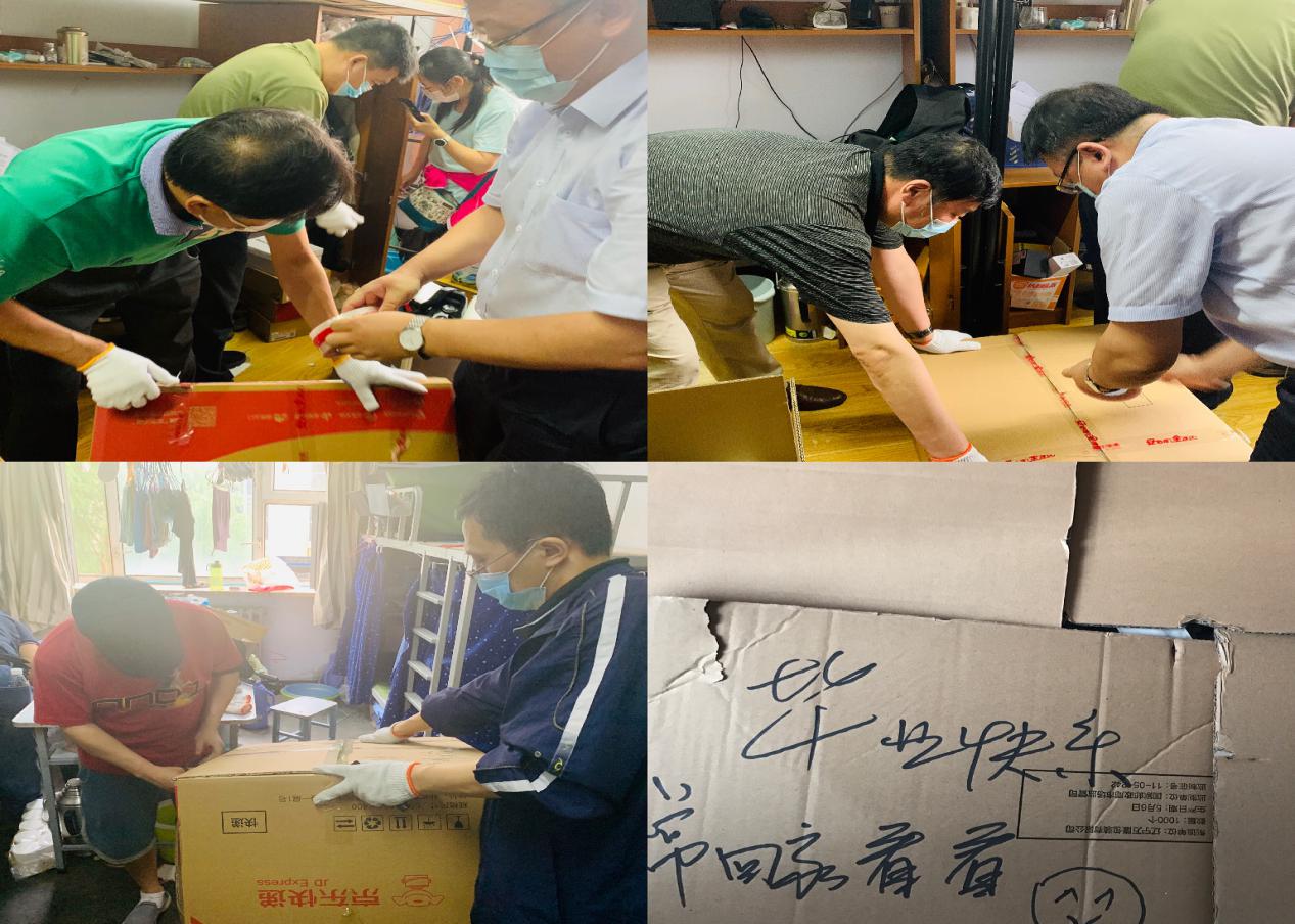 公司党委制定了详细的工作方案,以学科(学位点)为单位,以研究生导师为主导,成立若干小组,划分责任寝室。在工作开始之前,专门组织召开培训会,由参加过第一批寝室整理工作的教师做专项培训,传授经验,使参加志愿服务的老师提前了解行李打包邮寄工作的全流程。老师们提前与员工建立微信群,了解员工的想法,初步整理了贵重物品、图书资料、邮寄地址等清单,极大地提高了工作效率。