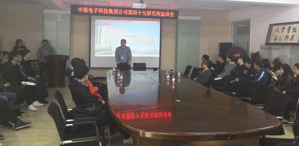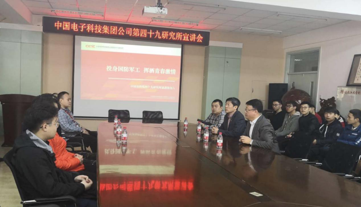 3月19日上午10时,中国电子科技集团公司第四十九研究所校园专场招聘会在实验楼315会议室顺利举行。本次招聘会面向电子工程公司2019届应届毕业生,电子工程公司党委书记王斌、微电子系主任赵晓锋老师及部分毕业生参加了本次招聘会。