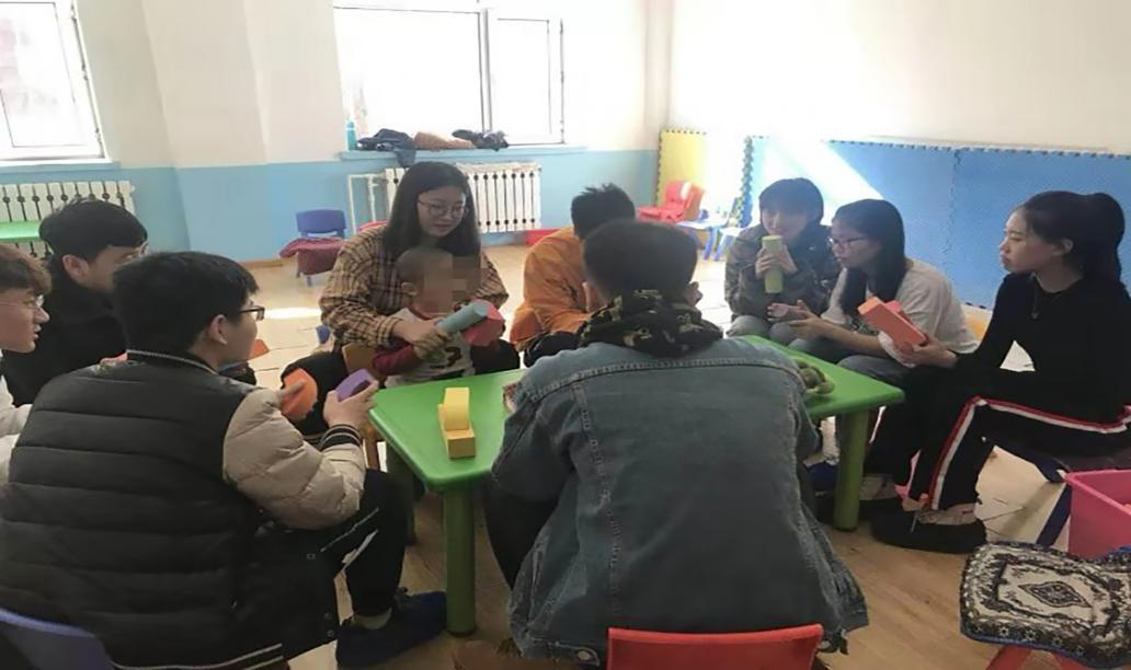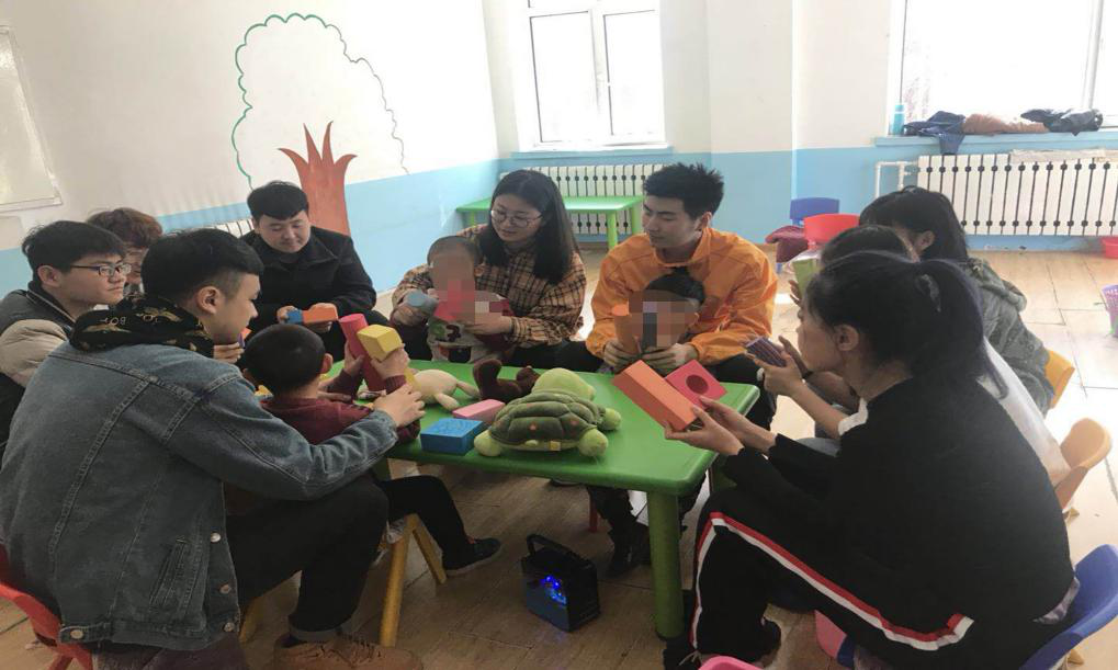 抵达星蕾幼教之后,志愿者与孩子们通过做游戏的方式拉近彼此的距离。他们将积木和玩具摆在桌上,拼成一个又一个图形。志愿者与孩子们一起将积木堆成小城堡,这激发了孩子们极大的兴趣,孩子们在轻松愉快的游戏氛围下很快就消除了与志愿者哥哥姐姐们之间的陌生感。