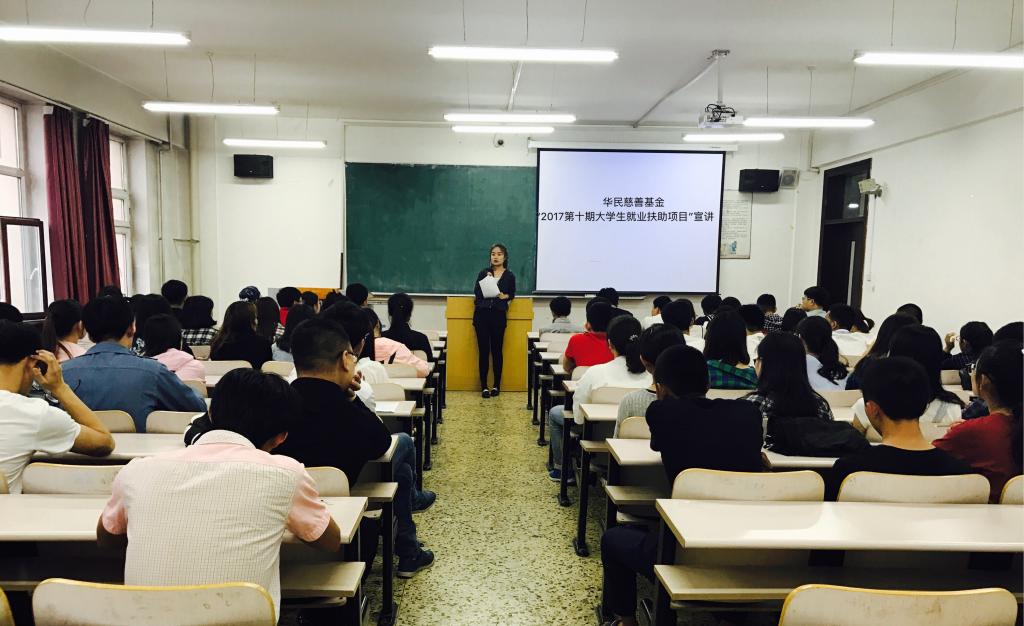 2017年6月6日,3377体育在汇文楼324教室召开华民慈善基金会“2017年第十期老员工就业扶助项目”工作布置会。院团委书记、2014级辅导员苏颂老师及院2014级全体家庭经济困难员工参加会议,会议由苏颂老师主持。