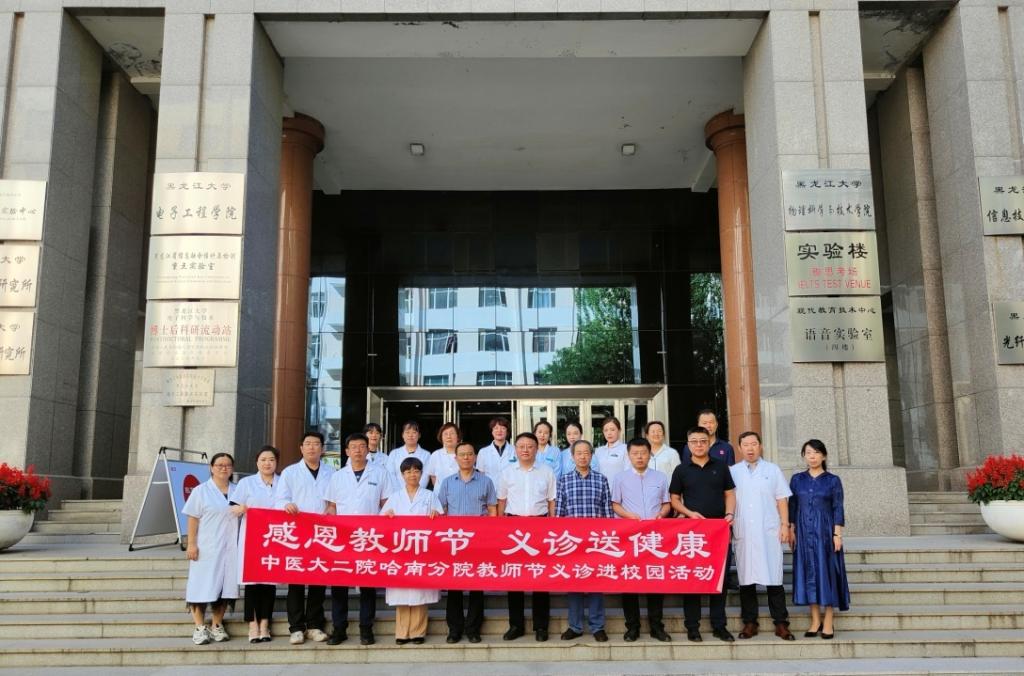 在第39个教师节来临之际,为保证广大教职工的身体健康、提升大家的健康意识并为教职工提供便捷的求医问药途径,9月8日下午,3377体育工会邀请黑龙江中医药大学附属第二医院专家医疗团队来公司开展“喜迎教师节,温暖送健康”义诊活动。公司领导在实验楼门前迎接义诊专家团队,并致以衷心的感谢。
