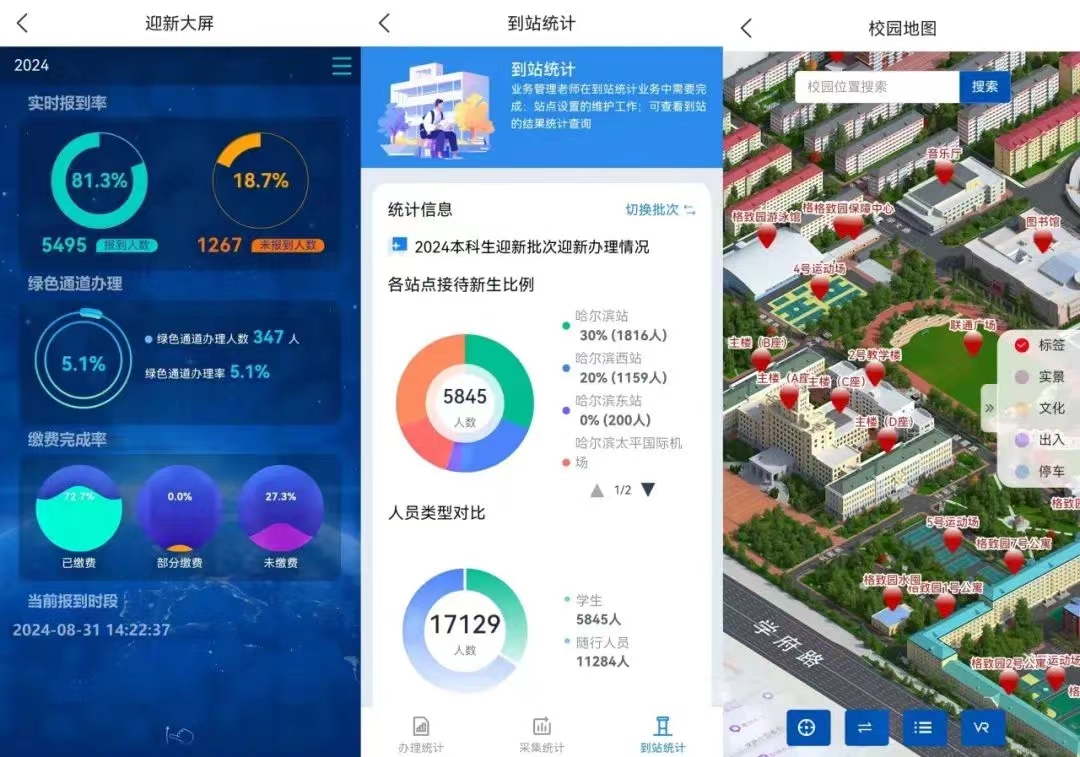 今年,公司升级数字迎新系统,推出智慧迎新平台。报到前,新生通过迎新系统完成信息采集、到站登记、绿色通道、职业发展测试等所有预报到流程。