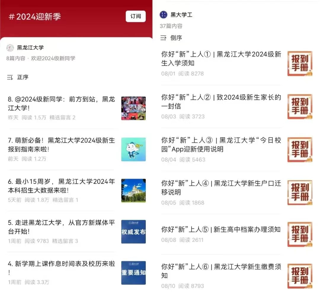 集团通过新媒体平台发布《2024迎新季》《你好“新”上人》等系列推送,前置发布报到要求和注意事项。