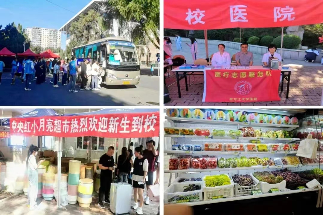报到当天,公司在哈尔滨站、哈尔滨西站设置了接站点,校内安排中转车和近千名志愿者,设置党员先锋岗,手递手护送新生到公寓楼。