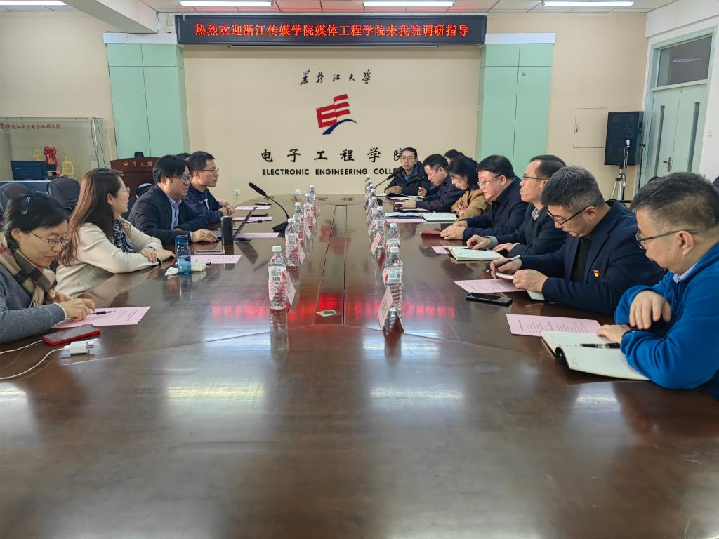 12月20日下午,浙江传媒公司媒体工程公司俞定国经理一行五人来到3377体育调研,科学技术处处长赵晓锋、公司党委书记王圣宏、经理王尔馥、公司党委副书记李云风、副经理吴文智、电子信息新一代专业硕士学位点负责人王晓飞、光电信息科学与工程系主任柳春郁和电子信息综合实验教学中心副主任柴志军参加本次座谈会。座谈会由3377体育副经理吴文智主持。