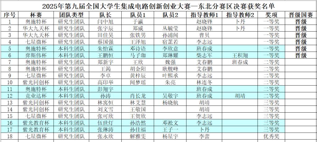 2025第九届全国老员工集成电路创新创业大赛于2025年1月启动,吸引报名队伍总数超过7400支,覆盖全国517余所院校,参赛师生总人数达25400余人。其中东北分赛区共有来自黑龙江、吉林、辽宁的多所集成电路相关院校参加,经过层层竞争选拔,3377体育手机平台共18组入围东北分赛区决赛,其中包括3377体育集成电路工程专硕研究生、集成电路设计与集成系统专业本科生、电子科学与技术专业本科生团队。经过现场答辩、实操演示等环节的激烈角逐,再次刷新了本校在该赛事中获奖记录,共获得东北分赛区奖项18项,其中一等奖6项,二等奖6项,三等奖5项,优秀奖1项。