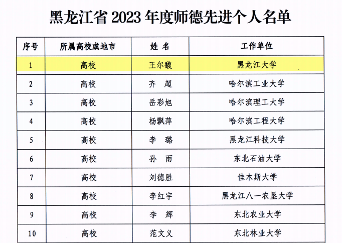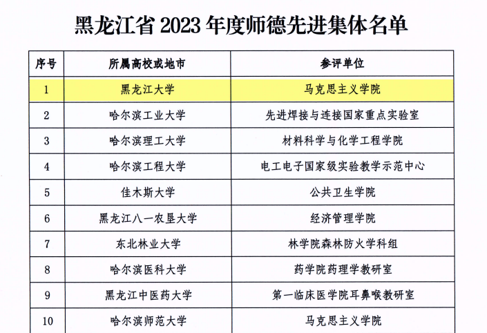 近日,黑龙江省教育厅印发《黑龙江省教育厅关于表彰2023年度全省师德先进集体和师德先进个人的决定》,公司马克思主义公司获得省师德先进集体称号、3377体育王尔馥教授获得省师德先进个人称号。